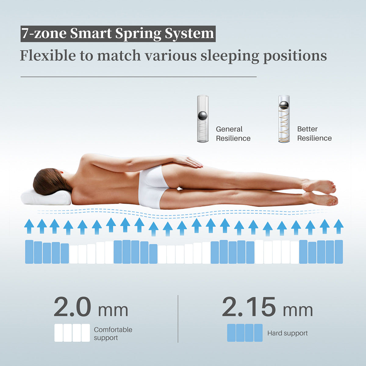 The Pocket Sprung Mattress are crafted with comfort foam and individual spring coil pockets. An innovative 9-zone support system can help adjust and correct your sleeping posture, fully relax your muscles, perfectly fit your body curve and provide a nice and even balance support of body.